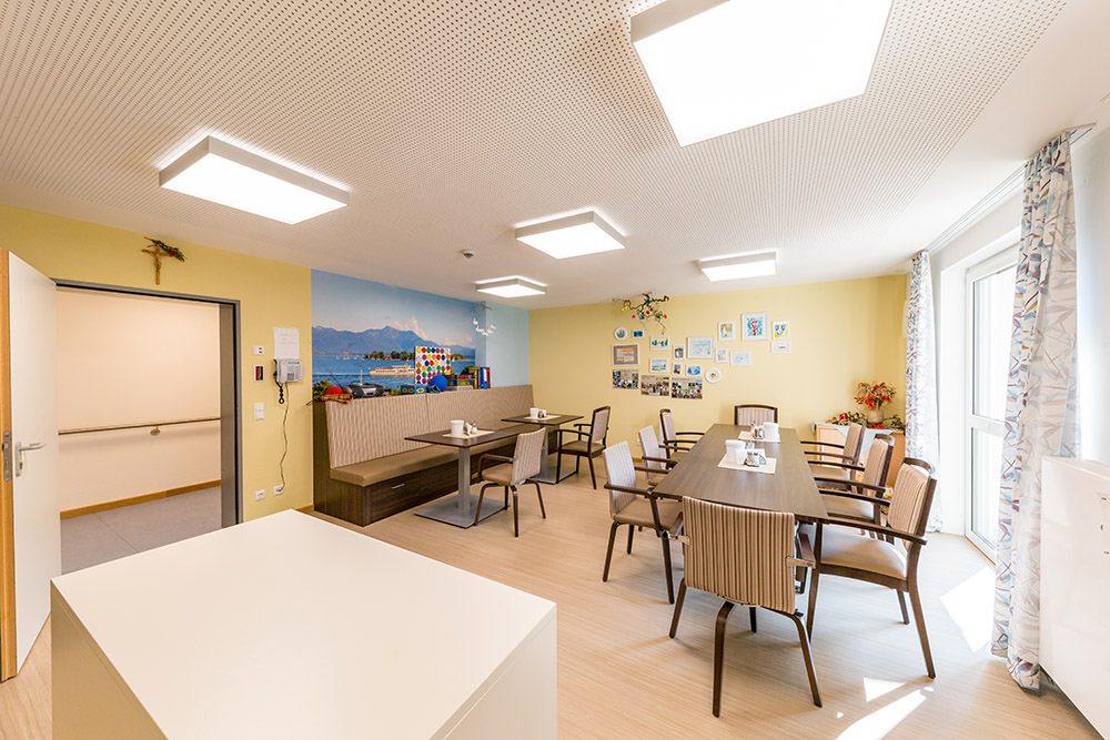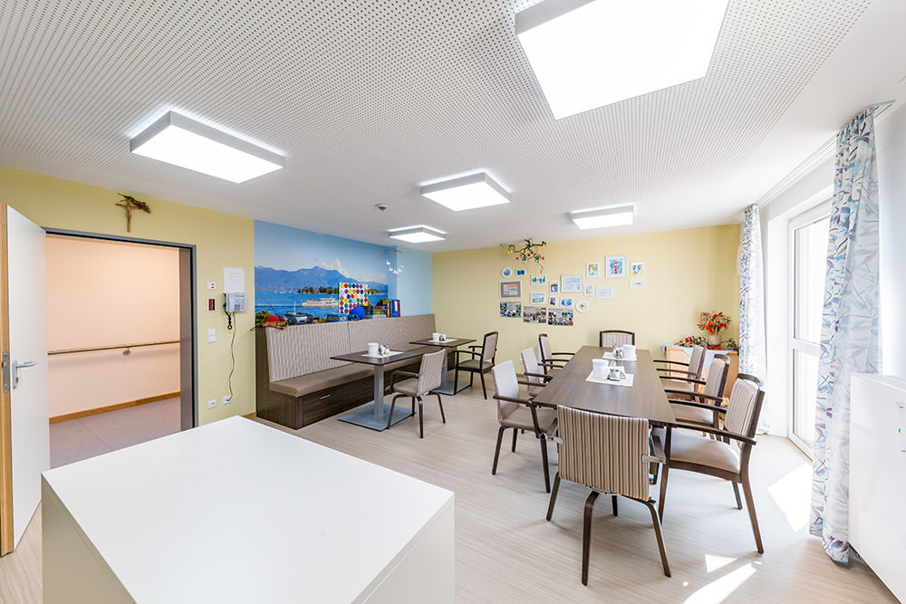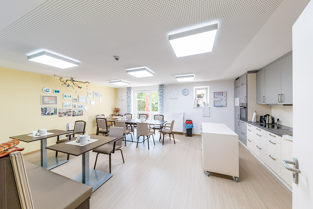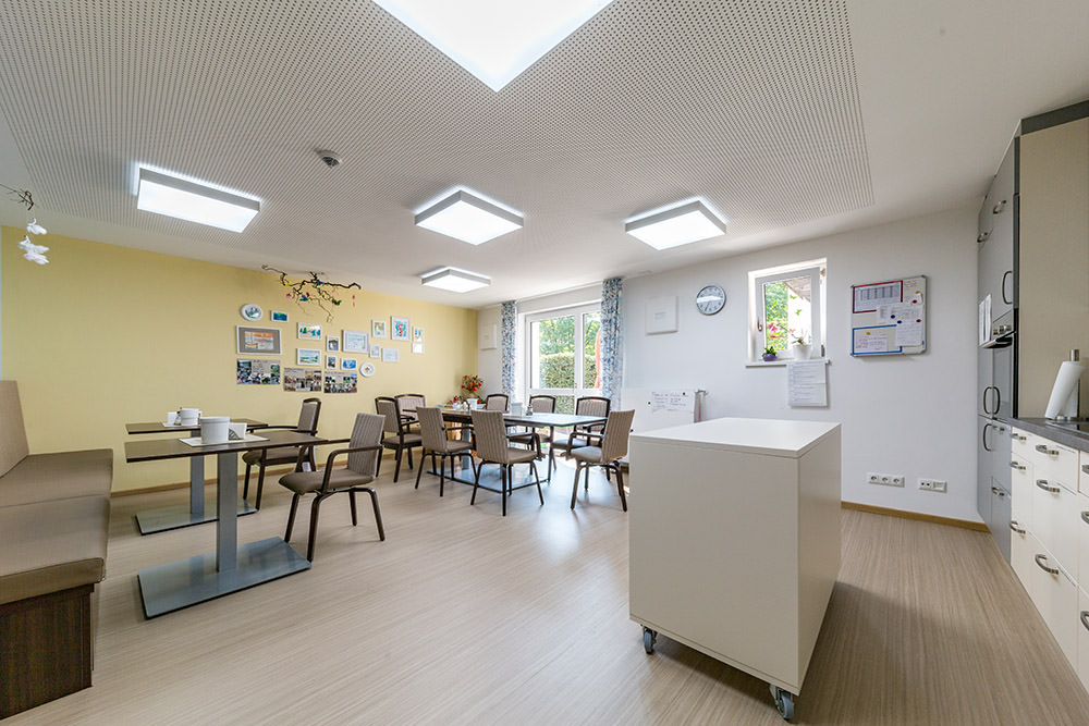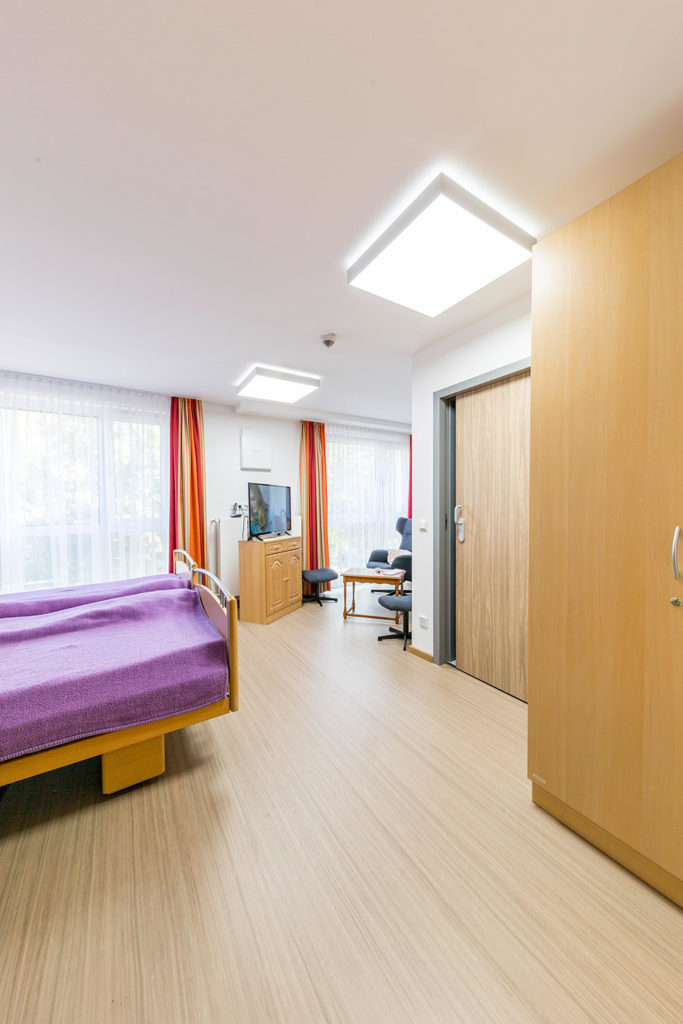 Helligkeit und Farbtemperatur passen sich stufenlos an den den Tagesablauf an – die Touchpanel wurden auf die geographischen Daten von Bad Endorf programmiert. Munterkeit und Aktivität am Morgen, wohlige Entspannung am Abend. Mehr Gesundheit durch lichtinduzierten Stressabbau. Großflächige und dabei flache Deckenleuchten mit völlig blendfreier Ausleuchtung der Räume. Zusätzliche Taster zur Bedienung für das Pflegepersonal im Bedarfsfall in jedem Zimmer.