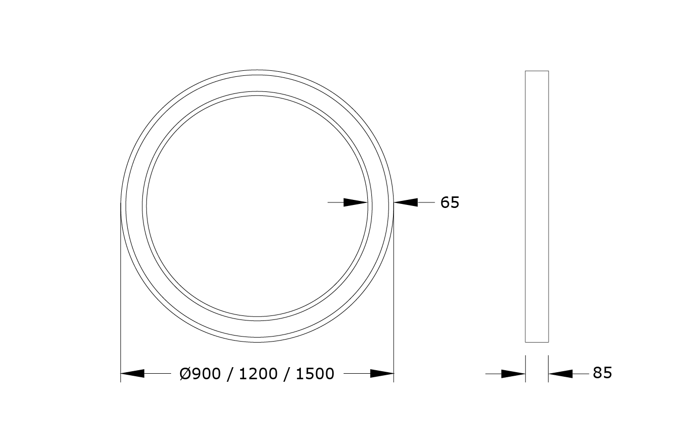 DxBxH: 900 mm x 65 mm x 85 mm |